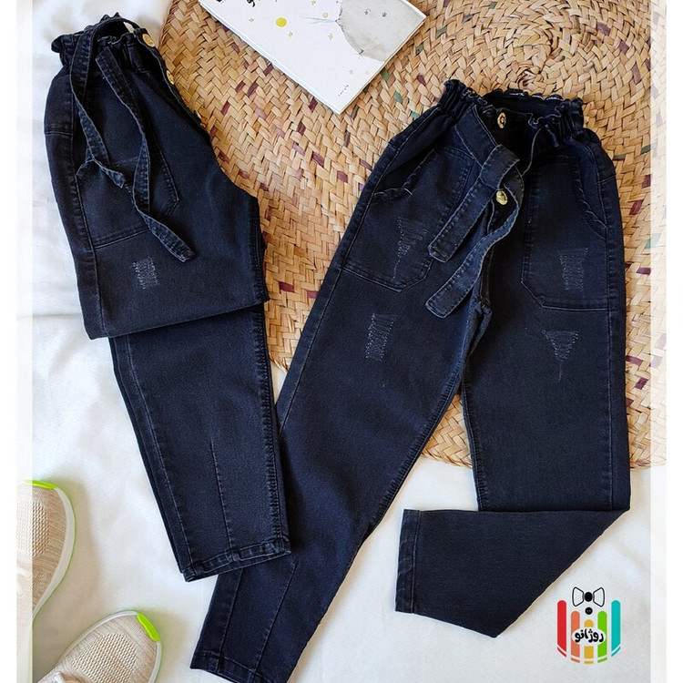 شلوار لی مام استایل دخترانه ذغالی کمرکش