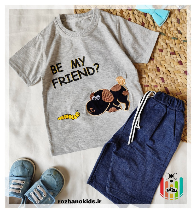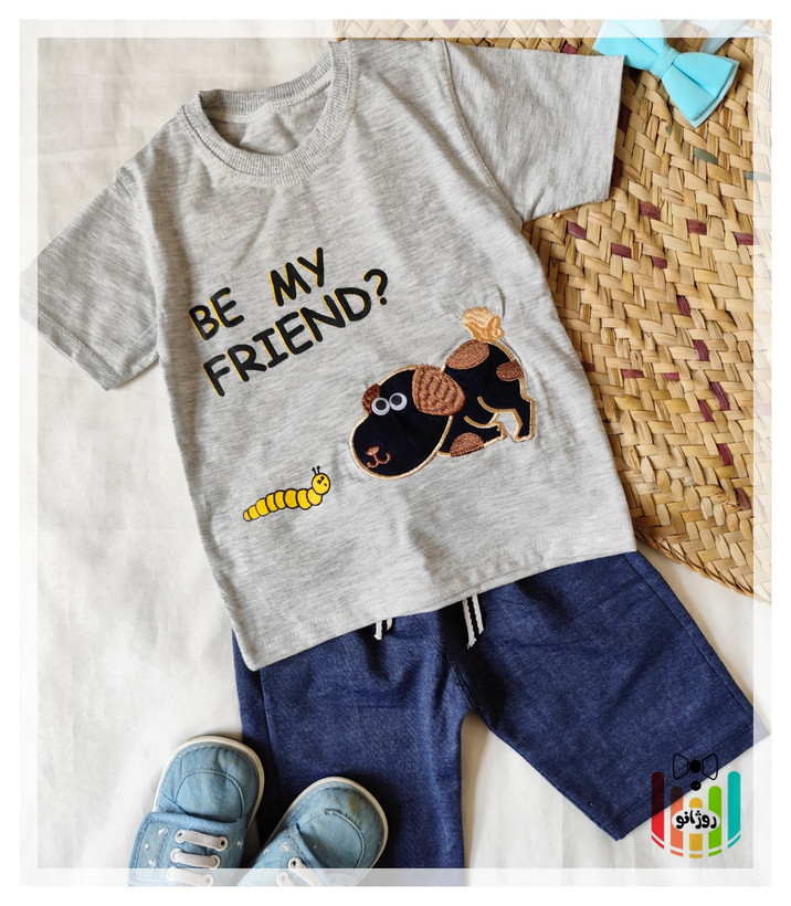تیشرت شلوارک پسرانه طرح هاپو چشم دکمه ای