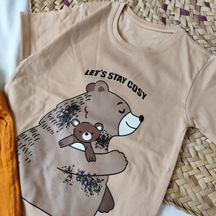 تیشرت شلوارک اسپرت طرح خرس قهوه ای