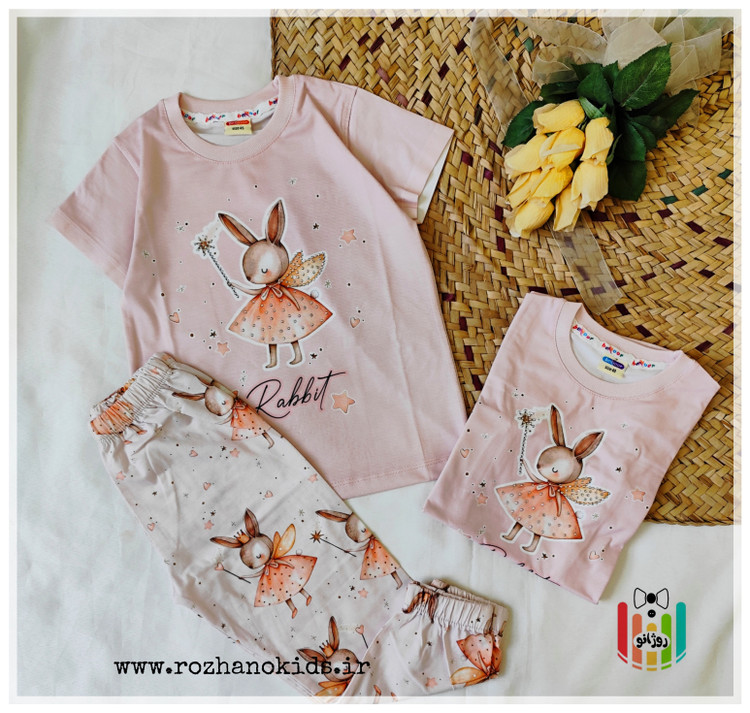 ست تیشرت شلوار دخترانه طرح خرگوش عصاجادویی