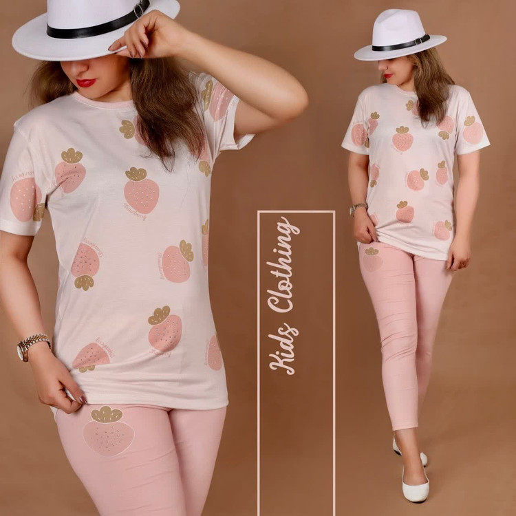 تیشرت شلوار دخترانه طرح توت فرنگی